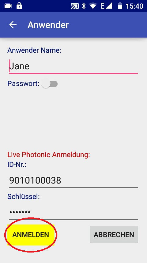 Einfach die Live Photonic LPS-Transfer Seite aufrufen und deine Live Photonic ID-Nummer und Schlüssel (Key) eingeben um deine Photonensequenz Anwendungen anzuzeigen und auf dein LPS-Gerät zu übertragen.